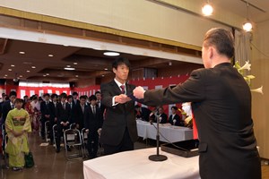 1月4日(日曜日)、広野町公民館で平成27年広野町成人式を行いました。新しく成人の仲間入りをしたのは、男性60人、女性38人の合わせて98人で、うち75人が式典に出席しました。新成人を代表してJFAアカデミー福島2期生の平澤俊輔さんが遠藤町長から成人証書を受け取りました。そして、半澤悠司さんと澤村有希さんが「はたちの夢」を発表して、新成人となった決意を述べました。最後に、青木僚平さんの謝辞で閉式しました。