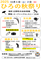 農産物の販売や地元商工会等の出店の収穫祭ほか、小中学生やこども園、各団体の作品を展示する文化展、健康まつりなど、多数の催し物が開かれます。ぜひご来場ください。