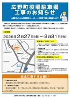 役場来庁者駐車場で2月27日(金曜日)から3月31日(火曜日)まで工事を行います。
