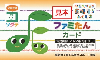 この事業では、福島県内にお住まいの子育て世帯に「ファミたんカード」を交付し、カードを協賛店で提示すると、お店のご厚意により割引やプレゼントなど、さまざまなサービスを受けることができます。