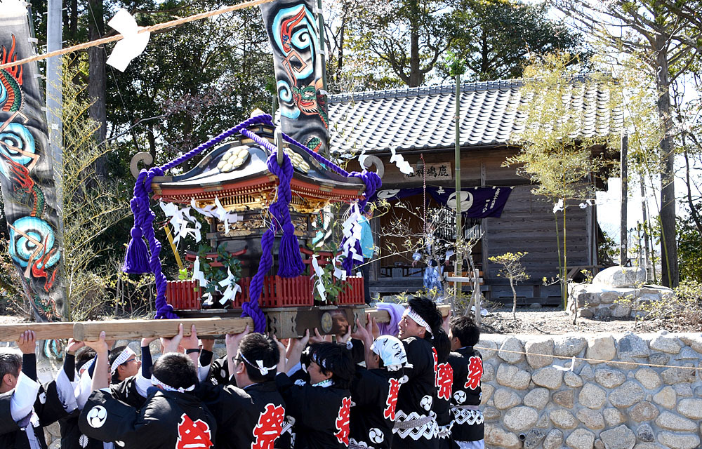 浜下り神事たんたんぺろぺろ ページ番号1004390 更新日 2024年5月7日 印刷大きな文字で印刷 浜下り神事たんたんぺろぺろ 4月の第一日曜に開催 浜下り神事たんたんぺろぺろ 大滝神社と鹿島神社は、女神さまと男神さまともいわれ、4月8日の祭礼には、両社の神輿が潮水の持つ浄祓力にその威力、霊力を認めて上浅見川字桜田のお旅所で「出会い」、浅見川河口の浜で潮垢離〈しおごり〉をとる浜下りの神事を行います。地元では、「たんたんぺろぺろ」と呼ばれています。(太鼓をたたく音「たんたん」、笛を吹く音「ぺろぺろ」からそう呼ばれるようになったようです。)